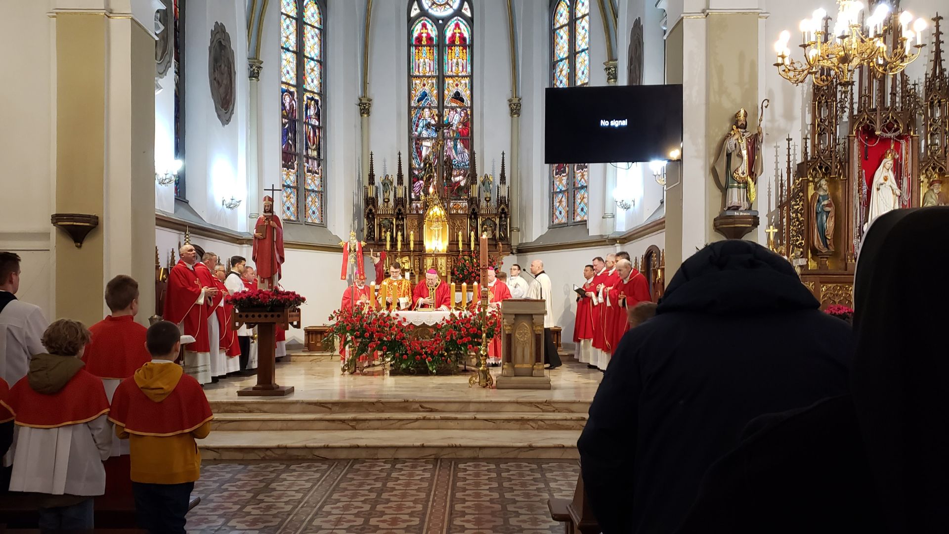 Przed rozpoczęciem Eucharystii biskup Jerzy przyjął życzenia imieninowe od delegacji: księży, sióstr zakonnych, parlamentarzystów i młodzieży. Wyraził wdzięczność za obecność i zapewnienia o modlitwie i zaprosił wszystkich do wspólnego dziękczynienia za diecezję.