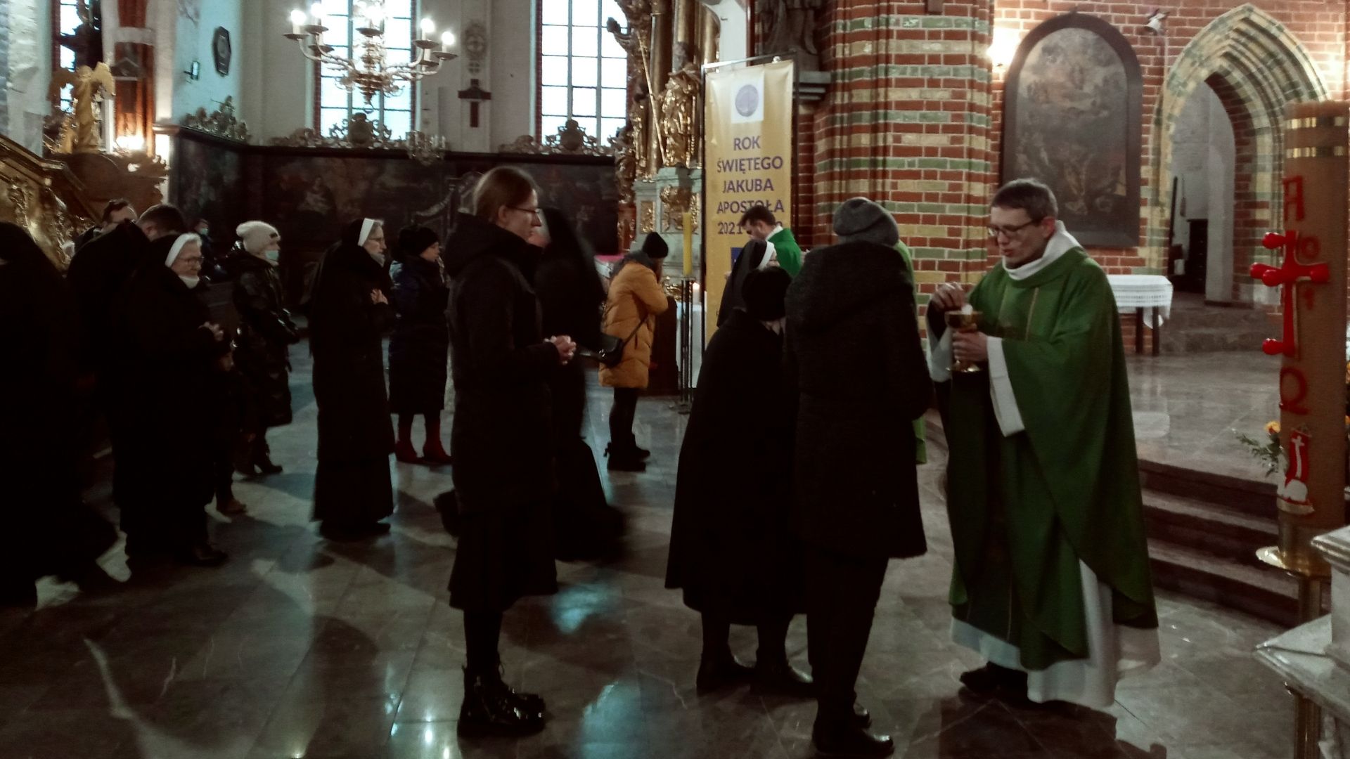 Głównym celebransem był proboszcz parafii św. Jakuba Wojciech Kiedrowicz, który wygłosił okolicznościową homilię. Koncelebrował Mszę św. proboszcz parafii Matki Bożej Królowej Polski w Toruniu Andrzej Kowalski oraz diakon Waldemar Rozynkowski.