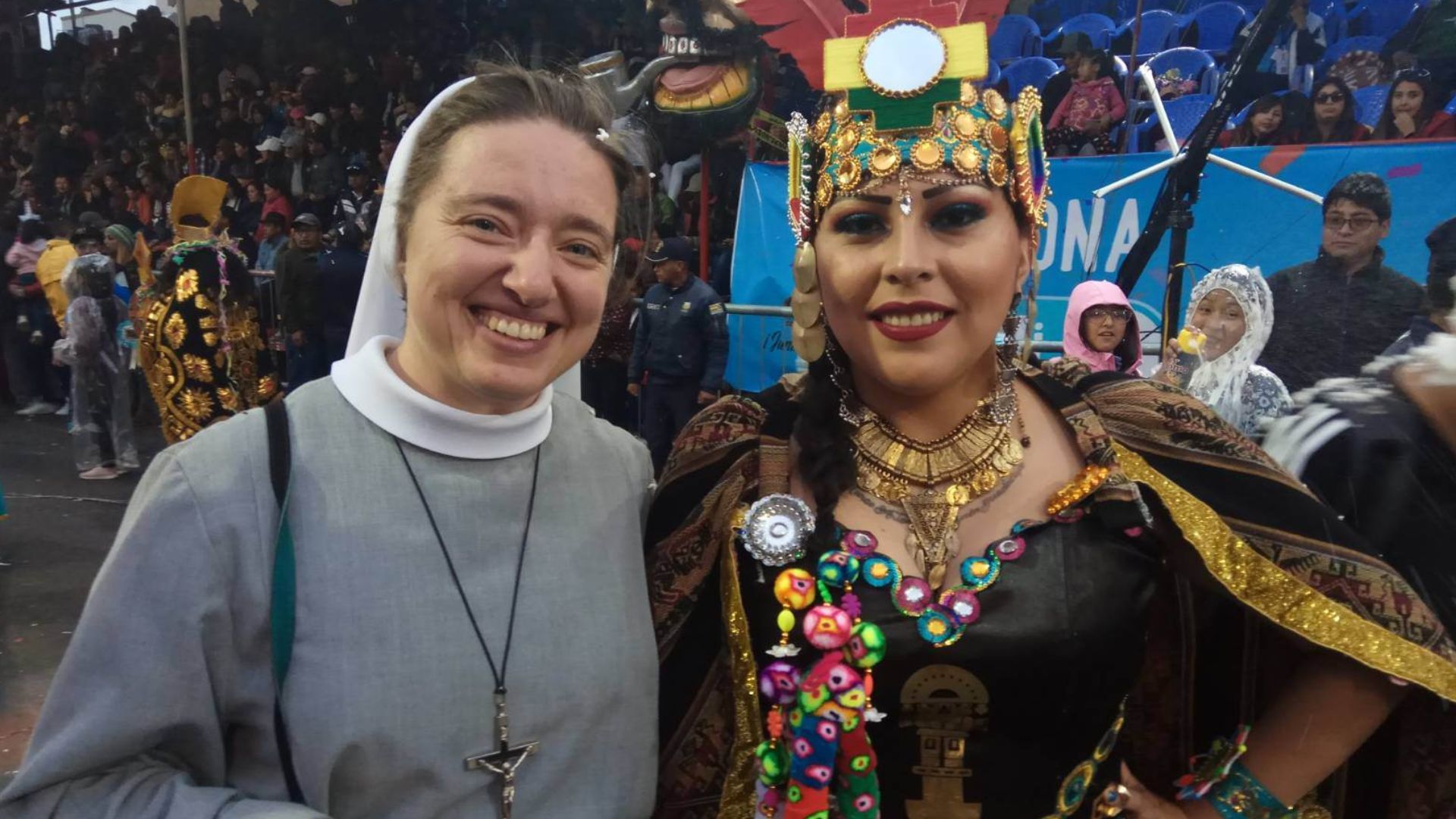 Karnawał zaczyna się procesją, na czele której jest niesiony krzyż, idzie biskup, kapłani, wierni, modląc się na różańcu i śpiewając pieśni religijne. Za nimi idą władze miasta i orkiestry grając muzykę tradycyjną boliwijską na cześć Matki Bożej. Pierwszy dzień takiego karnawału ma znaczenie pielgrzymkowe. Tancerze swoim tańcem składają hołd Maryi, dziękując za przeżyty rok i prosząc o łaski na kolejny. Szlak pielgrzymki – karnawału ma ok 4 kilometrów i może trwać do 20 godzin pierwszego dnia i tyle samo drugiego.