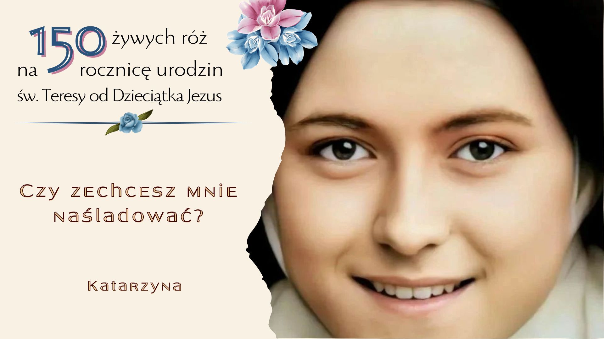 Chciałabym Tobie przede wszystkim podziękować za Twoją obecność w moim życiu. Dzięki Bożej Opatrzności, w jednej z sal katechetycznych, dostrzegłam Twój wizerunek. W Twoich oczach odczytałam pytania: Czy zechcesz mnie naśladować? Czy z otwartym sercem pójdziesz moim śladem, odpowiadając na wezwanie ukochanego Jezusa?