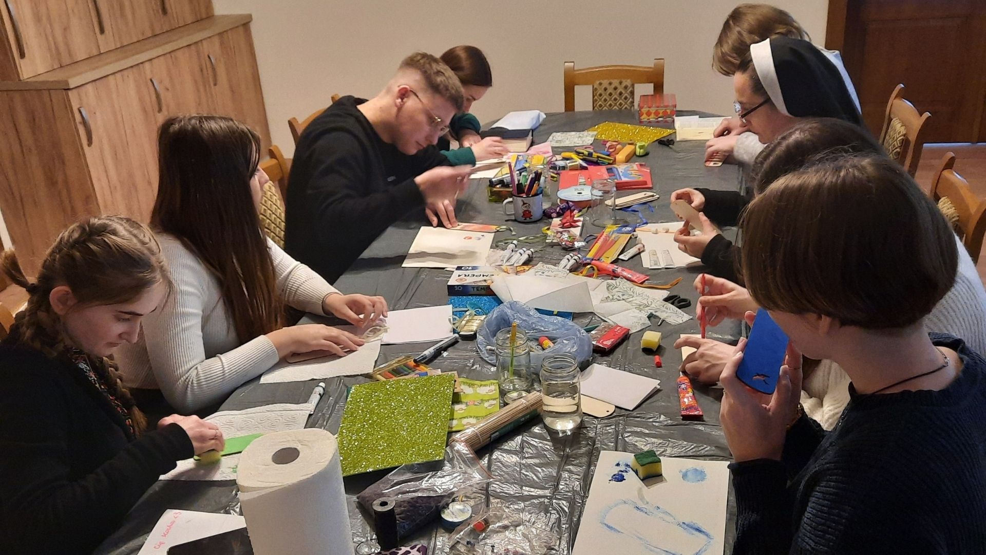 Po obiedzie i przerwie na spacer wróciliśmy do aktywności duchowych. Podczas Adoracji Najświętszego Sakramentu trwaliśmy na uwielbieniu Jezusa, powierzaliśmy Mu swoje potrzeby, otwierając się na Jego uzdrawiające dotknięcie. Podsumowaniem naszych rozważań i modlitwy był powrót do Słowa, które towarzyszyło nam przez cały dzień. Wykonaliśmy drewniane zakładki, by lepiej zapamiętać cytaty, które najbardziej tego dnia zapadły nam w serca.
