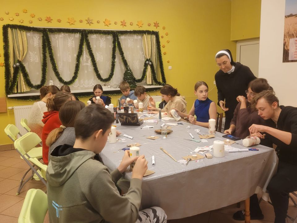 Od paru miesięcy w naszym domu zakonnym w Suwałkach odbywają się warsztaty artystyczno – formacyjne dla dzieci w których jako wolontariusze posługuje młodzież – uczniowie klas starszych ze Szkoły Podstawowej nr 4 w Suwałkach. W grudniową przedświąteczną sobotę, 17.12.2022 r. miałyśmy okazję gościć grupę wolontariuszy, która przeżywała swój czas formacji i warsztatów.