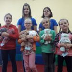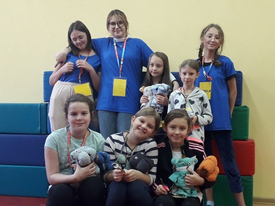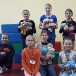 Druga część warsztatowa polegała na wykonaniu maskotek z ręcznika – pieska i misia. Po krótkim instruktażu „jak to zrobić” uczestnicy i animatorzy wykazali się ogromną kreatywnością, co widać na załączonych zdjęciach.