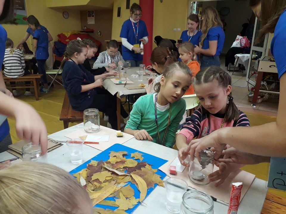 Spotkanie rozpoczęło się o godzinie 9:00. Uczestnicy zostali podzieleni na kilka grup. Po zapoznaniu się i zabawie rozpoczęła się pierwsza część artystycznych zmagań, czyli wykonywanie jesiennych lampionów. Po przerwie śniadaniowej, uczestnicy dokończyli ozdabianie lampionów i wszyscy udali się na modlitwę do kaplicy Sióstr Terezjanek.