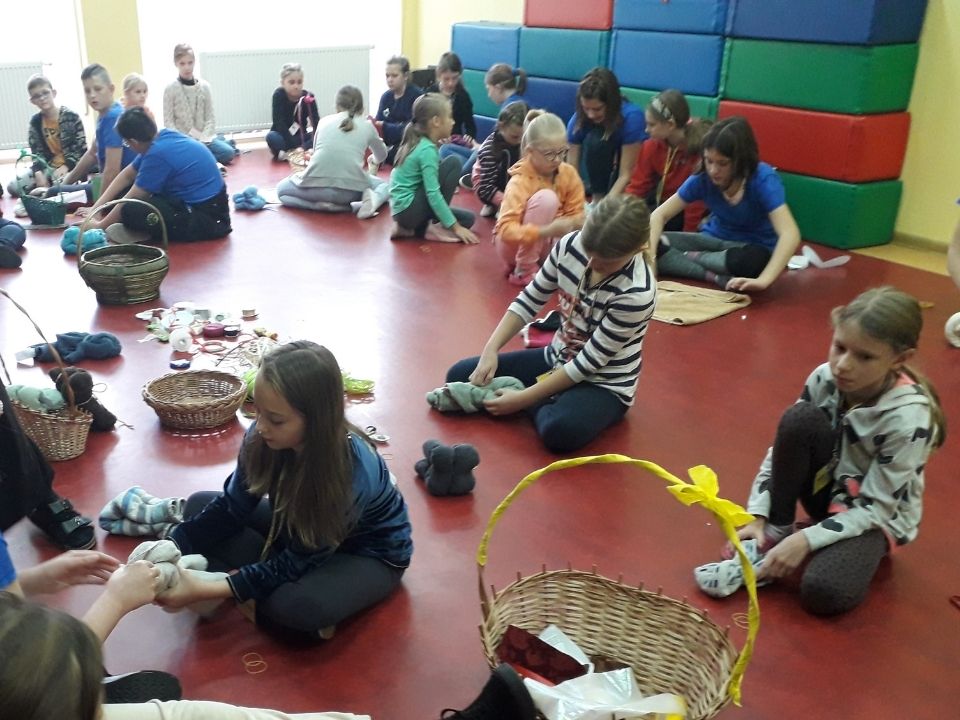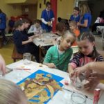 Po części artystycznej był czas na wspólną zabawę, śpiew i dobre rozmowy. O 13:00 do drzwi świetlicy zapukali rodzice i zabrali małych artystów do domu. Ekipa organizacyjna uporządkowała miejsce zajęć i udała się na zasłużony, pyszny obiad. W warsztatach uczestniczyło łącznie około 50 osób – uczestników i animatorów.