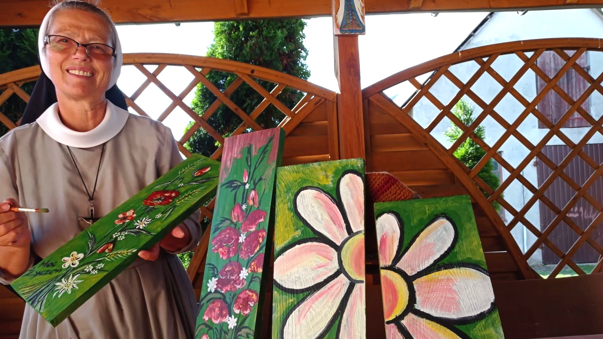 Sierpień to miesiąc kwitnienia różnych kolorowych ziół i kwiatów takich jak: chabry, arnika, babka lancetowata, cykoria podróżnik, dziurawiec zwyczajny, fiołek trójbarwny, jasnota biała, nagietek, nawłoć, szałwia lekarska, łopian większy, świetlik lekarski, melisa itd… Wyprawa rowerem lub spacer wśród tych dobroczynnych roślin przywołuje wiele wspomnień z dzieciństwa i wczesnej młodości. Osobiście, pamiętam jak przynosiłam bukieciki kwiatów do przydrożnego krzyża na którym był umieszczony obrazek Matki Boskiej Częstochowskiej. Chociaż polne kwiaty szybko więdną, to jednak bez znużenia wymieniałyśmy je razem z koleżanką. Teraz, gdy przyjeżdżam na urlop już jako siostra zakonna- Terezjanka – widzę, że czynność dekorowania krzyża przejęły moje koleżanki, dziś już poważne panie gospodynie. Przyznam się, że zwyczaj przynoszenia polnych kwiatów nadal we mnie pozostał. Podczas dwutygodniowego urlopu starałam się chociaż jeden raz przynieść bukiecik kwiatów mojej mamie, bo sama nie miała już sił, by pójść na łąkę i je podziwiać. Teraz, gdy już jej nie ma między nami, bo została zaproszona przez Boga na inne łąki i ogrody, zostawiam bukiecik kwiatów namalowany na desce, dzięki któremu wyrażam moją żywą pamięć, miłość i wdzięczność.