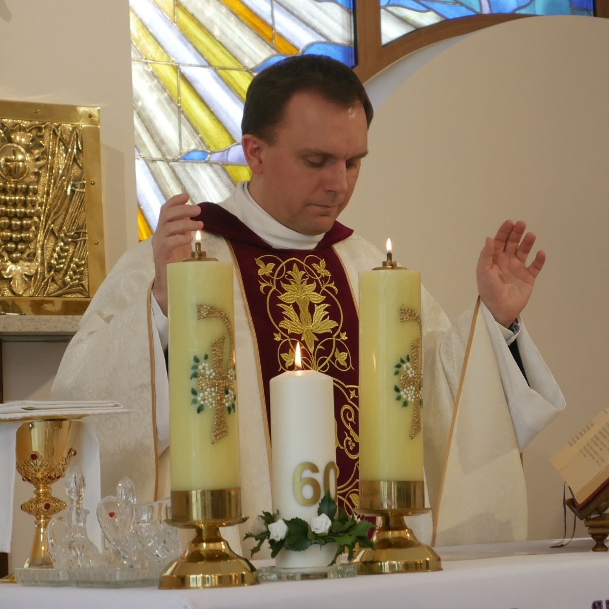 Eucharystia rozpoczęła się wejściem procesjonalnym Jubilatki niosącej świece, której towarzyszyła przełożona generalna. Płonąca świeca w dłoniach Jubilatki wyrażała jej oddanie i spalanie się dla Boga i wypełnianie Jego woli. Podczas procesji zgromadzenie Liturgiczne śpiewało hymn do św. Teresy od Dzieciątka Jezus: „Święta Tereso, córko Karmelu”, przywołując jej wstawiennictwa, w tak ważnym wydarzeniu dla Zgromadzenia. W słowie wprowadzenia ojciec proboszcz zaprosił wszystkich zgromadzonych do dziękczynienia za łaskę wybrania i wytrwania w powołaniu s. Anieli. W homilii podkreślał znaczenie życia konsekrowanego dla osób powołanych oraz dar wytrwania w powołaniu, który staje się łaską tak dla samej osoby powołanej jak również jest błogosławieństwem dla Zgromadzenia.