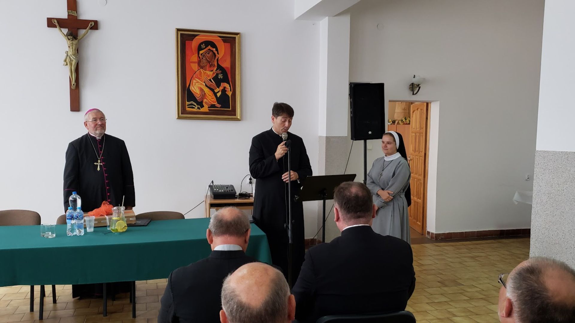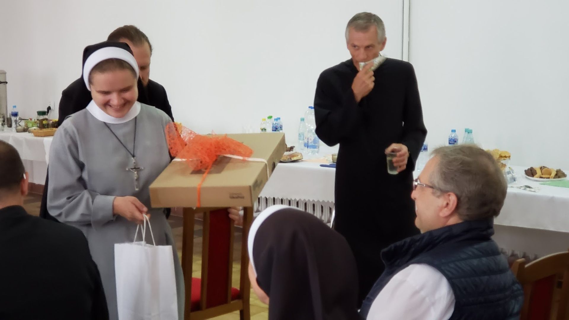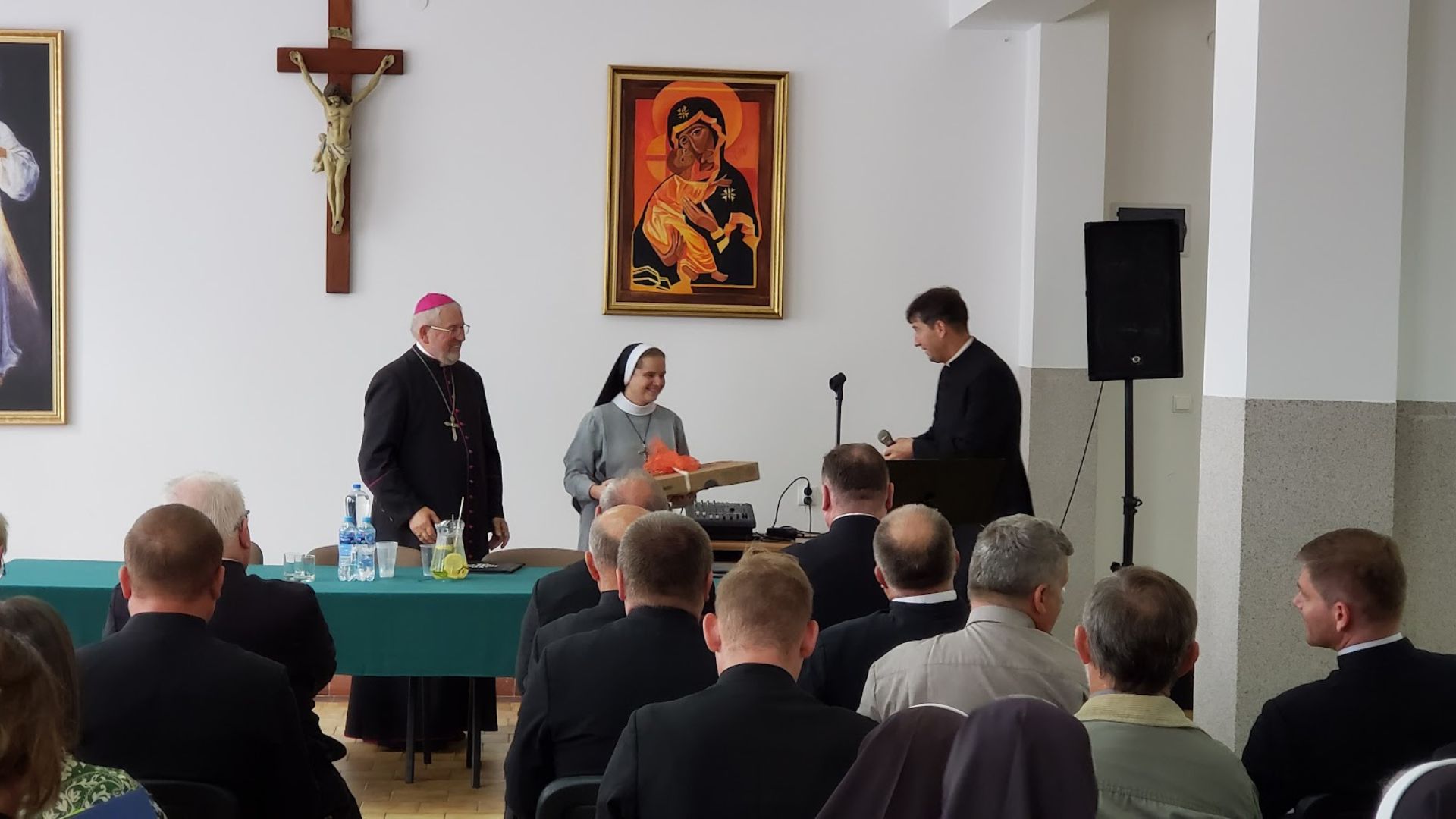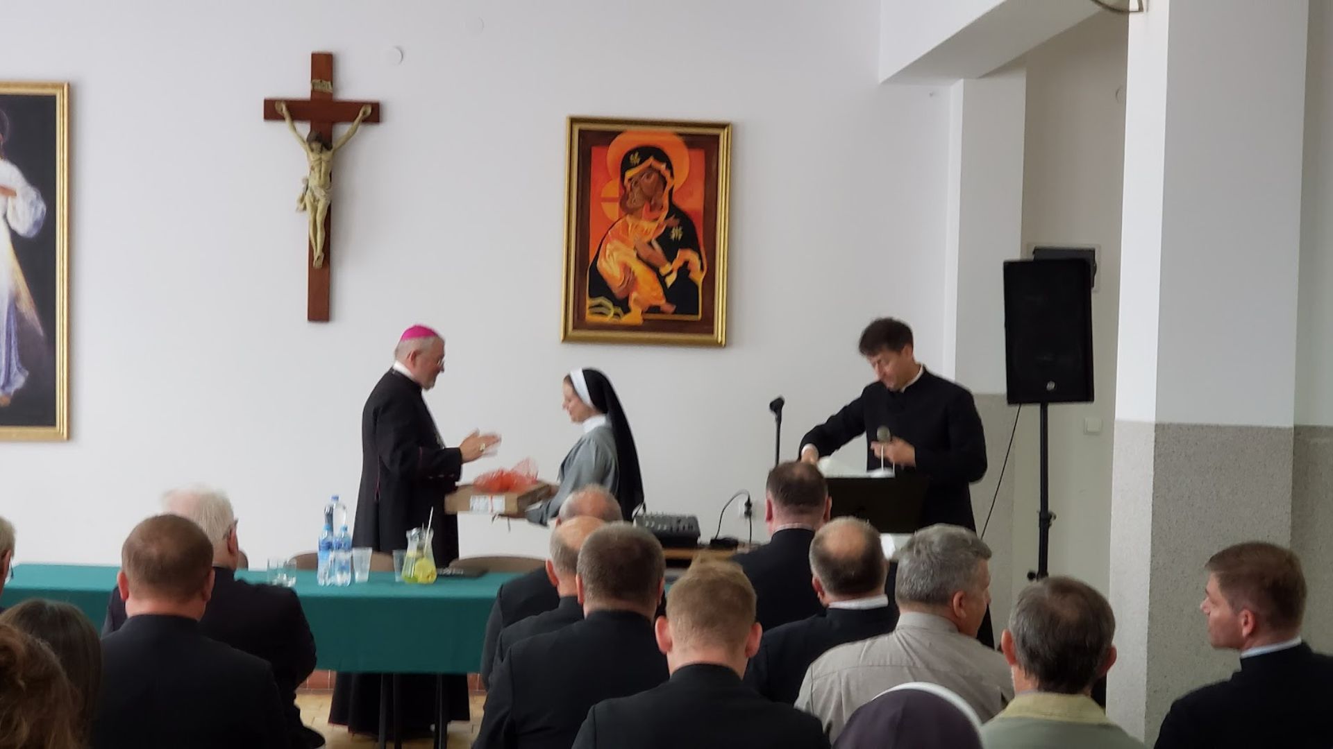 Druga część odprawy katechetycznej odbyła się w auli parafialnej. Wszystkich zebranych przywitał dyrektor Wydziału Katechetycznego diecezji ełckiej ks. Wojciech Kotarski i na samym początku wręczył s. Annie (Krystynie) Nowakowskiej, terezjance wygrany laptop za zajęcie pierwszego miejsca w Ogólnopolskim Konkursie Katechetycznym „Odmawiajcie różaniec” dla nauczycieli religii. Konkurs został przygotowany przez Wydawnictwo Jedność. Siostra Anna (Krystyna) Nowakowska przygotowała prezentację multimedialną pt.: „Objawienia Matki Bożej” na etap edukacyjny: szkoła podstawowa klasy I-IV. Nagrodę przekazał siostrze ks. biskup Jezry Mazur życząc dalszych sukcesów w pracy katechetycznej.