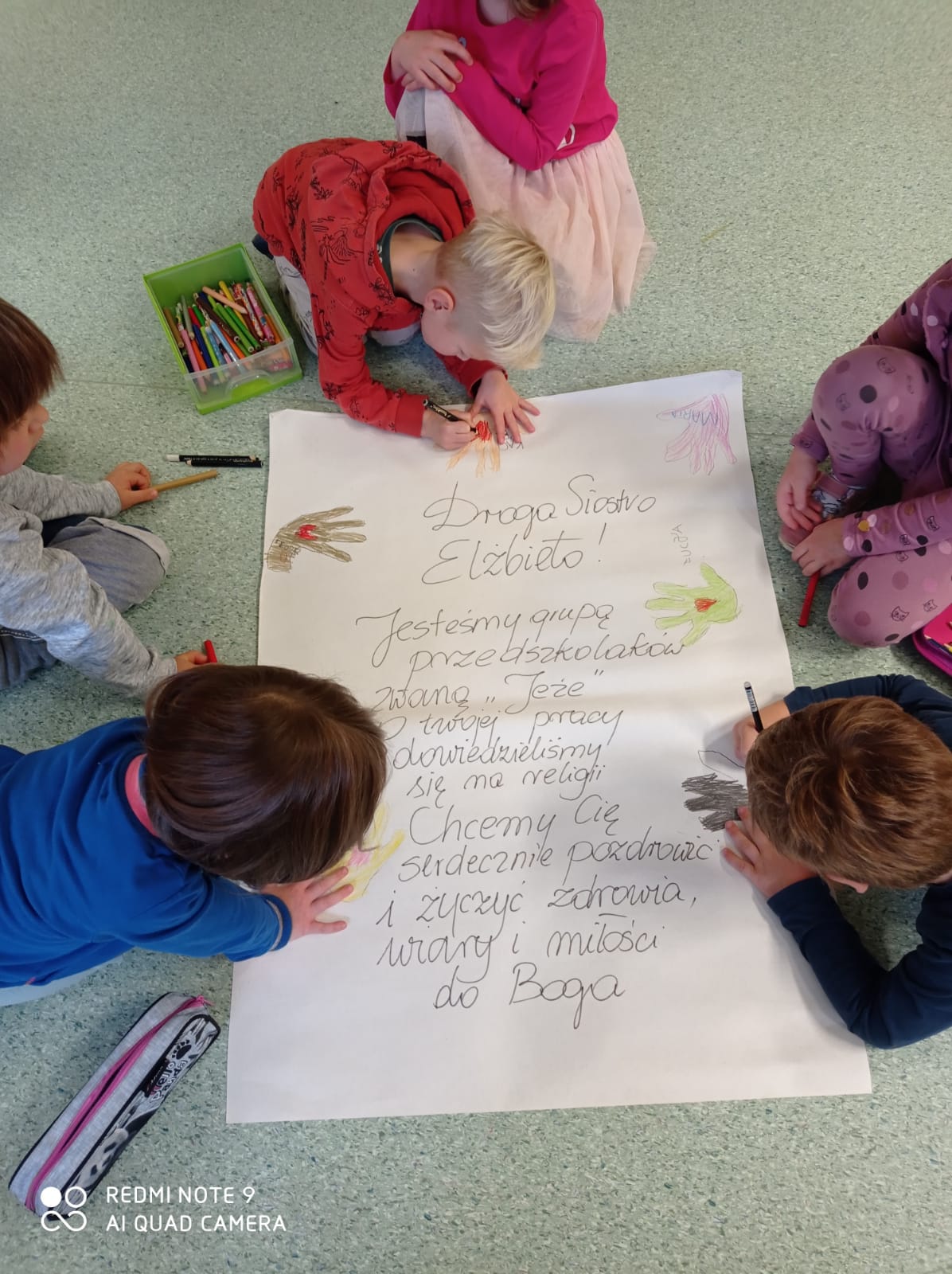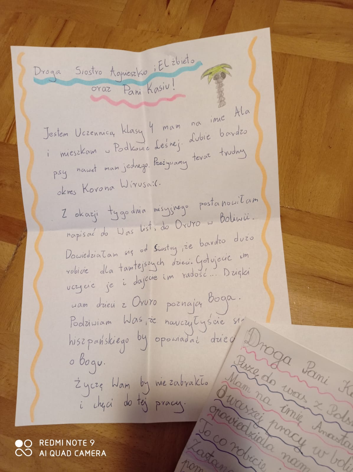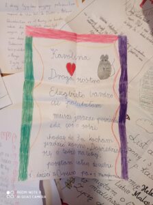 W październiku 2020 r., podczas trwania tygodnia misyjnego Siostry katechetki przeprowadziły w polskich szkołach akcje pt.: „Napisz list do Misjonarza”. Na korytarzu szkolnym zawisły gazetki tematyczne, informujące o pracy Misjonarzy, a bezpośrednio na lekcji religii uczniowie z opowiadań katechety dowiadywali się o życiu, pracy i działalności misjonarzy oraz o tym czego oni najbardziej od nas potrzebują. W tym celu dzieci obejrzały film przygotowany przez pana Tomasza Domańskiego dotyczący pracy Sióstr w Oruro. Film ten cieszył się dużym zainteresowaniem wśród najmłodszych. Uczniowie, usłyszeli żywą narrację siostry Elżbiety misjonarki z Boliwii, ale także zobaczyły bogactwo zdjęć, obrazów, które były żywym uobecnieniem miejsca oraz pracy Sióstr. Uważam, że cel akcji został osiągnięty. Napłynęło wiele listów od dzieci. Ich żywa wiara i prawdziwa miłość do Chrystusa została utrwalona w kilku ale jakże ciepłych słowach, do konkretnych, wybranych przez siebie misjonarzy. Liczymy, że w związku z rozpoczętą akcją: „Napisz list do Misjonarza” zawiąże się pomost przyjaźni dzieci z Polski i Oruro. Będzie to szczególna relacja z kolegami i koleżankami z Boliwii. Niech dzieła, które są prowadzone rękami misjonarzy w Boliwii zostaną umocnione więzią dziecięcej modlitwy. Przesyłamy serdeczne pozdrowienia dla wszystkich misjonarzy w Boliwii.