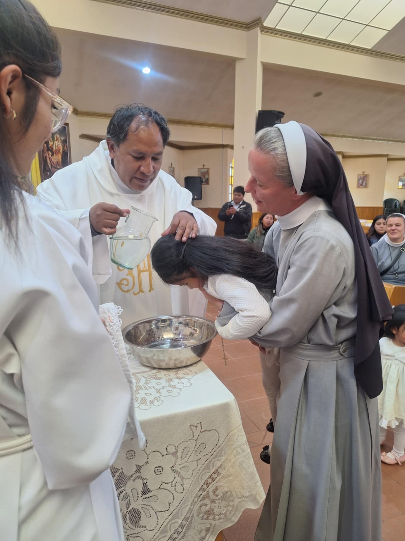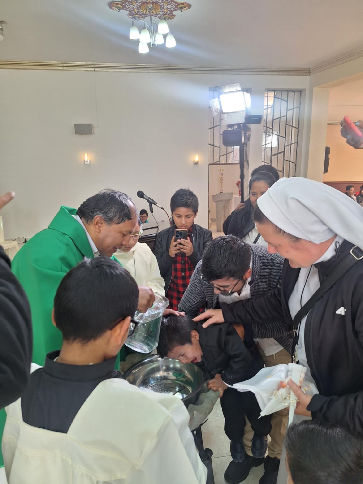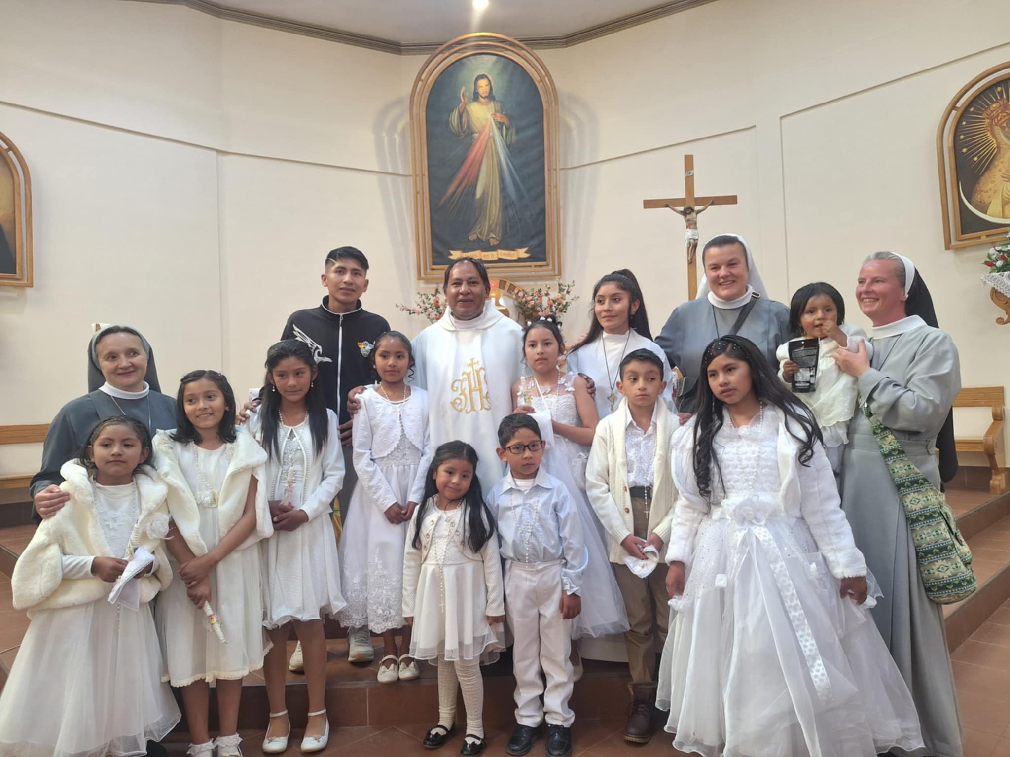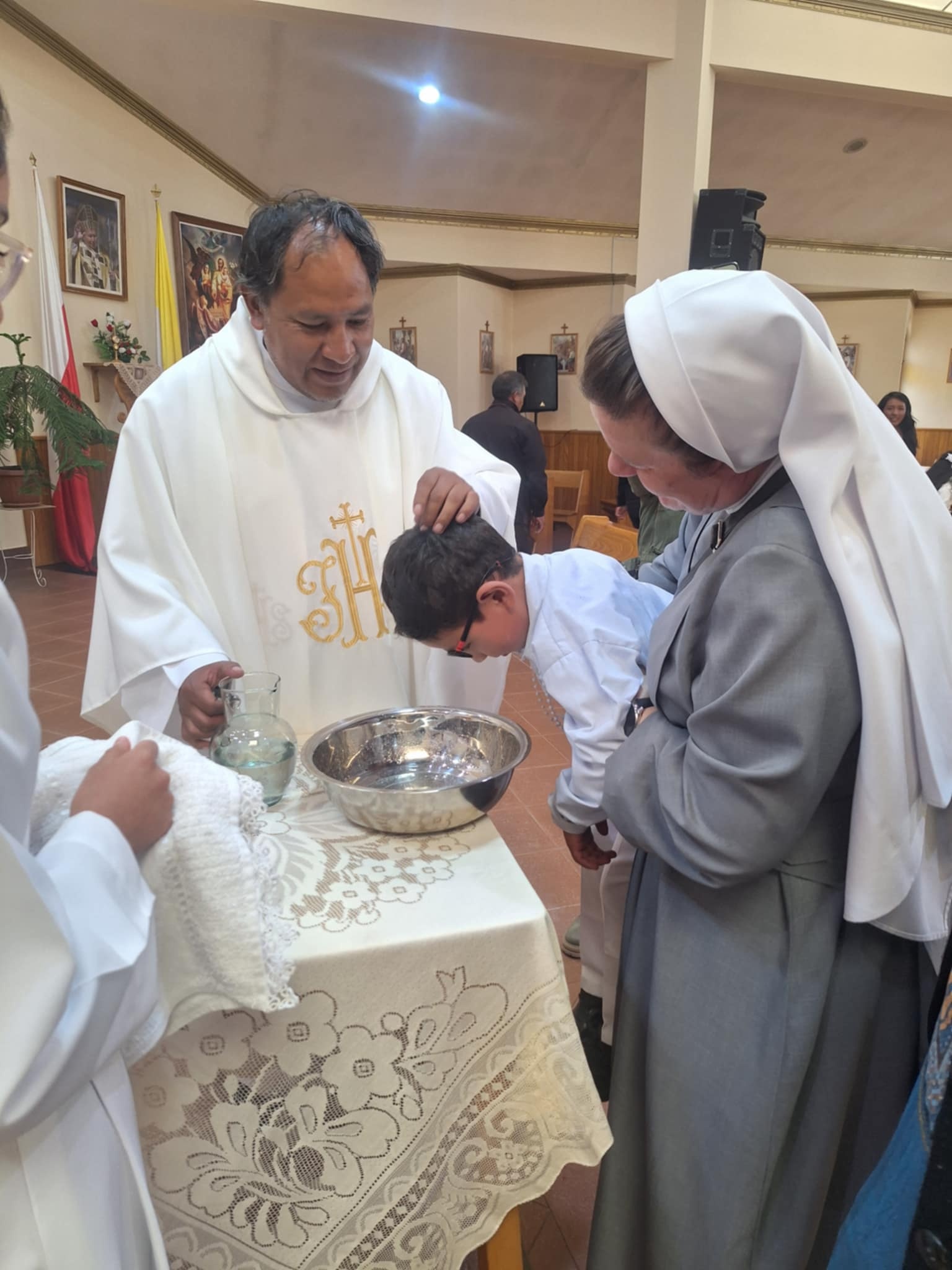 Wracając do naszych wydarzeń… Kończąc rok szkolny w Boliwii również kończymy rok katechetyczny. Pierwszym owocem roku katechetycznego jest chrzest święty naszych wychowanków. W tym roku ponad dziesięcioro dzieci przygotowywało się do chrztu świętego. Bardzo się cieszymy, bo dokładnie to wydarzenie jest takim punktem kulminacyjnym naszej misji. Starsze dzieci bardzo przeżywały to wydarzenie. Dzieci mogły się skupić na sakramencie, ponieważ tutaj nic nadzwyczajnego nie organizuje się po chrzcie. Nie ma prezentów i wielkich imprez – jest po prostu chrzest.