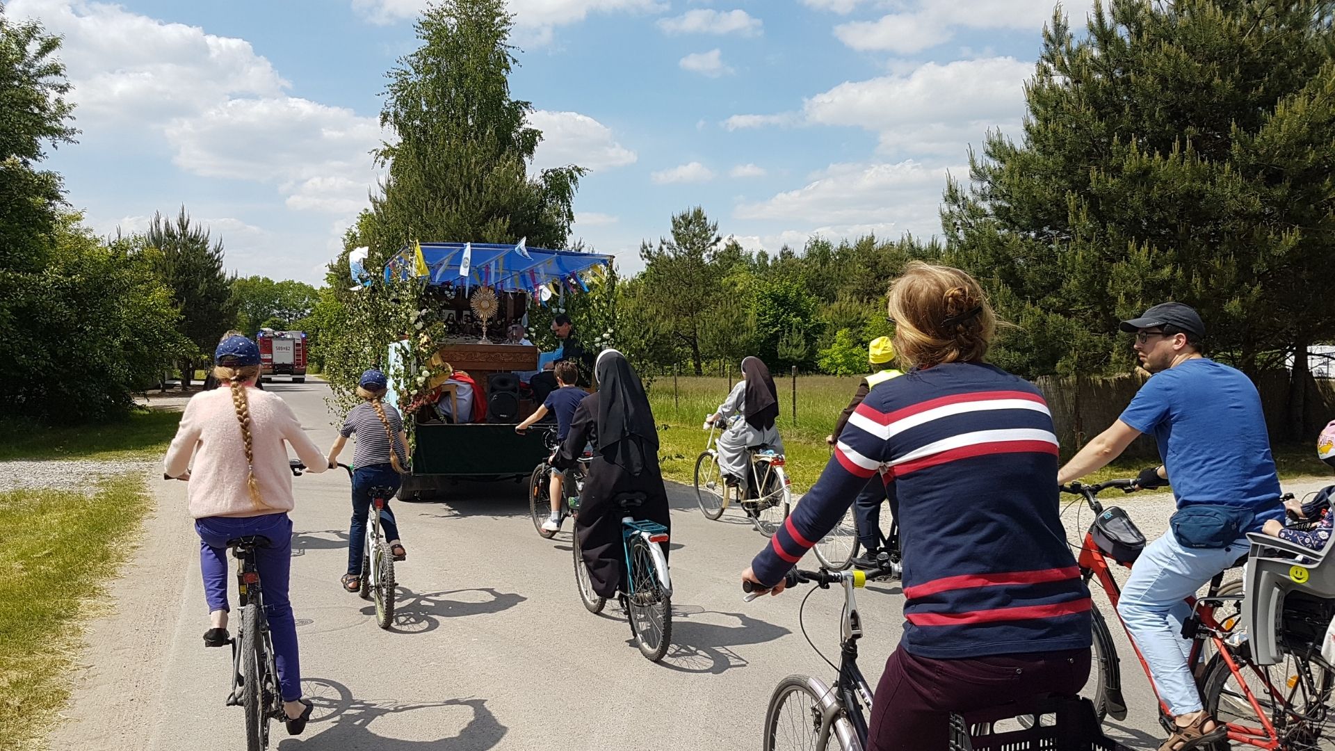 W uroczystość Bożego Ciała, w parafii pw. św. Krzysztofa w Podkowie Leśnej odbyła się nietypowa procesja Eucharystyczna, w której wzięły udział również siostry Terezjanki. Warto dodać, że jej przebieg był nieco inny niż zazwyczaj.
