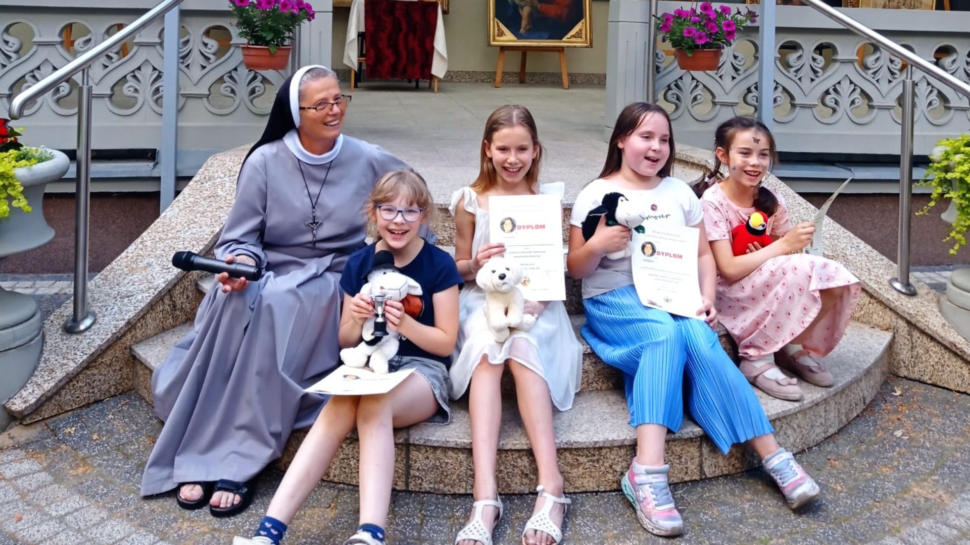 Nie można zapomnieć o dzieciach, które też miały swoje przysłowiowe „pięć minut”. Zrobiły przedstawienie pt. „Mała droga”, na plakacie Tereski domalowały kwiaty z okazji Jej 150 rocznicy urodzin, a w plenerze szukały odpowiedzi na pytania dotyczące życia Jubilatki. Zwieńczeniem było rozdanie dyplomów i symbolicznych nagród.
