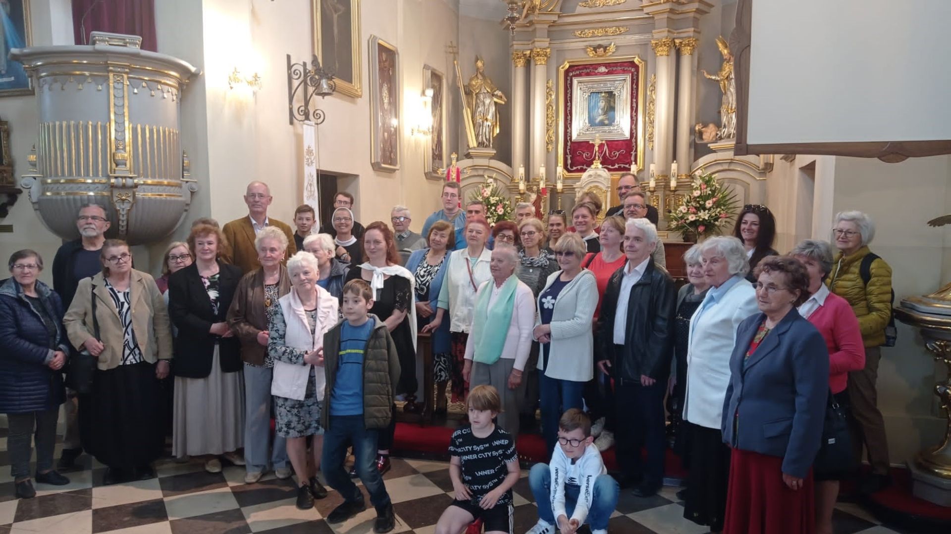 Ksiądz Proboszcz Wojciech Osial na miejsce do sanktuarium w Powsinie przybył z grupą pielgrzymów autokarem. Dzięki temu obie grupy zarówno autokarowa i rowerowa mogły uczestniczyć razem we Mszy św. którą sprawowali: ksiądz Proboszcz i ksiądz Krzysztof Dowalewski.
