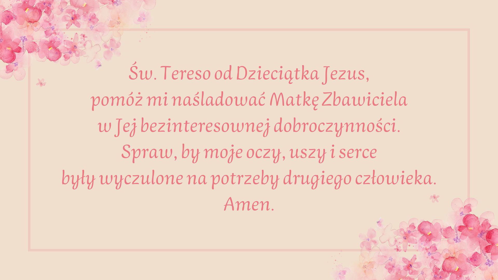 Św. Teresa zachęca do tego, by zachować w sercu nadzieję i pozwolić łasce Bożej działać w nas. Miłosierny Bóg troszczy się o każdego z nas i pomoże nam osiągnąć cele, które są zgodne z jego wolą. Kiedy szukamy woli Bożej i realizujemy ją w naszym życiu, stajemy się pokorni, tak jak pokorna była Maryja.