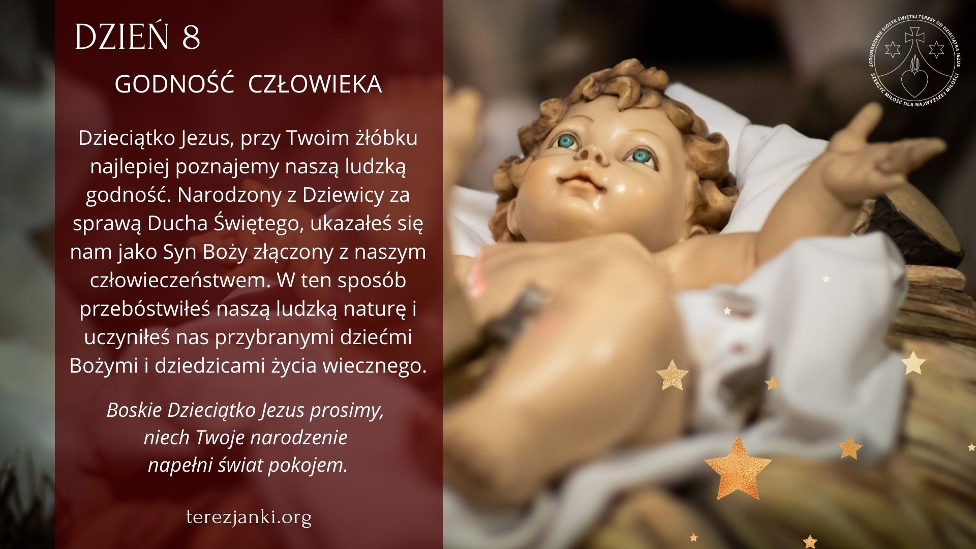 W dniach od 16-24 grudnia rozpoczynamy Nowennę do Dzieciątka Jezus przygotowującą nas bezpośrednio do uroczystości Bożego Narodzenia. Chcemy wraz z Maryją uwielbiać przychodzącego Jezusa i trwać w Tajemnicy Wcielenia. Niech Boskie Dzieciątko Jezus przygotuje nasze serca i napełni nas radością ze spotkania z Nim w tajemnicy Betlejemskiej nocy.