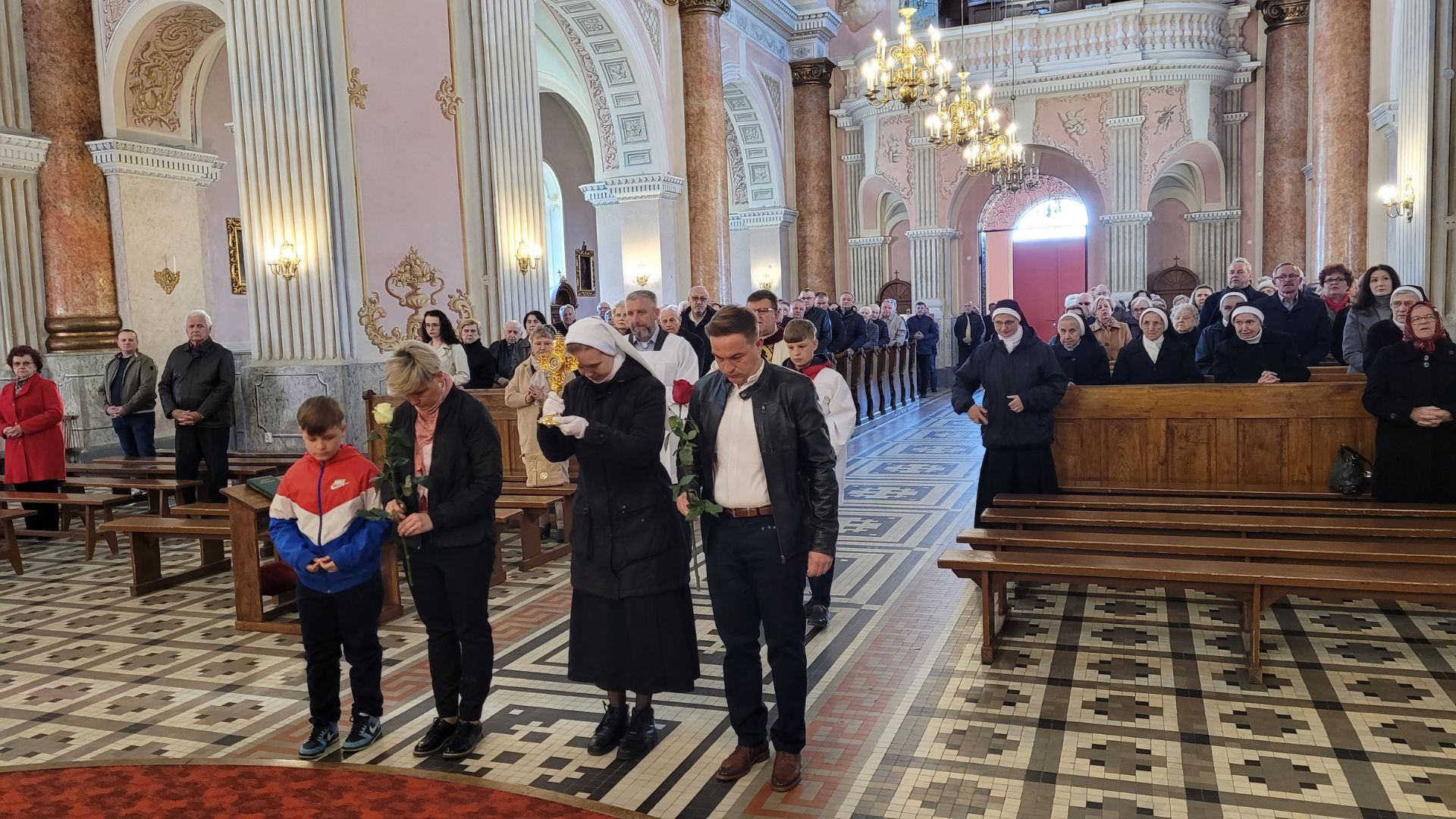 Każda Msza Święta rozpoczynała się wniesieniem relikwii naszej Patronki, które na co dzień przechowywane są w naszej zakonnej kaplicy. Podczas Mszy o godz. 9.00 modlitwa wiernych była rozbudowana o rekwizyty, które w jakiś sposób oddawały głęboki sens osobistych doświadczeń naszej Świętej. Msza o godz. 10.30 dla dzieci była ukazaniem wskazówek na małej drodze. Ze względu na I niedzielę miesiąca po Mszy Świętej o godz. 12:00 odbyła procesja Eucharystyczna, w której również zostały niesione relikwie Tereski. Czas świętowania i liturgia Mszy Świętej wzbogacone były pieśniami terezjańskimi, które śpiewane były przez p. Organistę jak też przez scholę młodzieżową. Dzięki nim mogłyśmy głęboko przeżyć cały Uroczysty dzień.