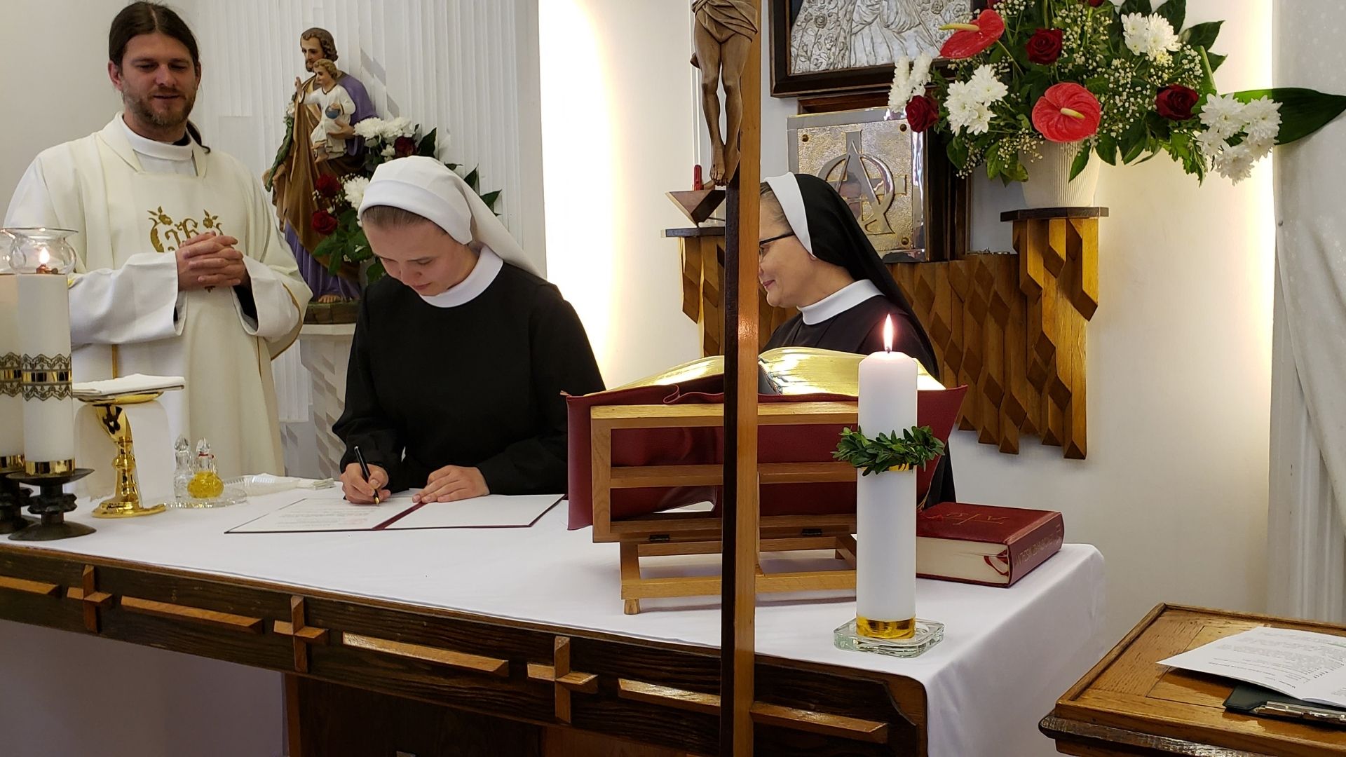 Są takie dni w życiu wspólnoty zakonnej, które pamięta się szczególnie mocno. Dla naszego Zgromadzenia taką szczególną chwilą był 7 października 2023 roku. We wspomnienie Najświętszej Maryi Panny Różańcowej s. Olena Tymoshchuk, pochodząca z Ukrainy, zakończyła swój czas formacji w nowicjacie i złożyła śluby zakonne: czystości, ubóstwa i posłuszeństwa, powierzając się z dziecięcą ufnością w ręce dobrego Boga.