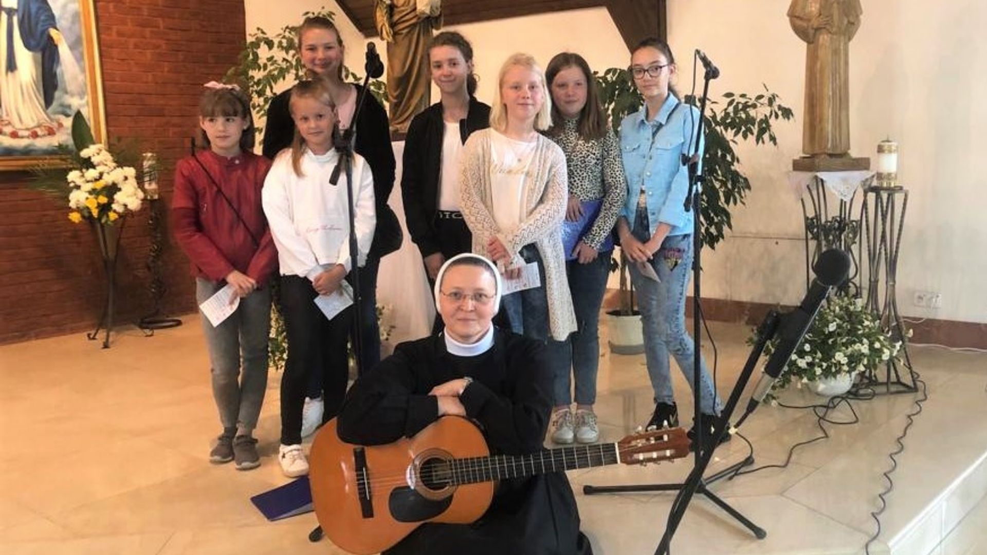 Schola parafialna przy parafii św. Franciszka z Asyżu w Ostródzie od września spotyka się na cotygodniowych próbach prowadzonych przez siostrę Dawidę Prusińską. Śpiew scholi dziecięcej podczas Mszy świętej niedzielnej z udziałem dzieci, jest posługą, która pozwala pięknie i pełniej przeżywać Eucharystię nie tylko dzieciom, ale również ich rodzicom. Udział w scholi parafialnej to nie tylko forma spotykania się z rówieśnikami, nauka nowych piosenek, zawiązywanie nowych relacji, ale również formacja duchowa, która musi iść w parze z odkrywaniem nowych pasji i umiejętności. Schola dziecięca ma już za sobą warsztaty muzyczne, które poprowadziła Małgorzata Hutek oraz występ na koncercie podczas piątego Franciszkańskiego Festynu Parafialnego wraz z Małgorzatą Hutek.
