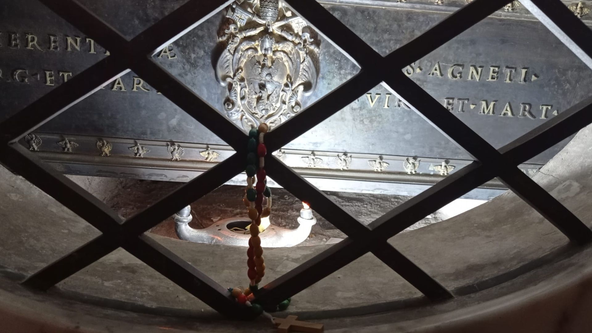 Święta Agnieszka, to młodziutka męczennica z III wieku. Zginęła za cesarza Dioklecjana. Według historycznych wzmianek, Agnieszka poniosła śmierć męczeńską w podziemiach stadionu Domicjana, który znajdował się na placu Piazza Navona. Miejsce jej męczeństwa upamiętnia (znany już od VII w.) kościół Sant’Agnese in Agone. Warto wiedzieć, że grób, a raczej relikwie Agnieszki znajdują się w katakumbach przy rzymskiej Via Nomentana. W tym miejscu był jej rodzinny dom. Podczas mojej osobistej modlitwy w tym kościele postanowiłam zajrzeć na dziedziniec należący do całego kompleksu, w którym mieszkała rodzina Agnieszki. Nie trudno mi wcale było wyobrazić sobie biegającą wśród krużganków malutką i zdeterminowaną na świętość małą Agnieszkę. Chociaż teren był pokryty liśćmi jesieni, to i tak miał w sobie coś urzekającego. W dniu jej święta, które przypada w Liturgii Kościoła 21 stycznia odbywa się poświęcenie młodych baranków z których wełny siostry zakonne wykonują paliusze.