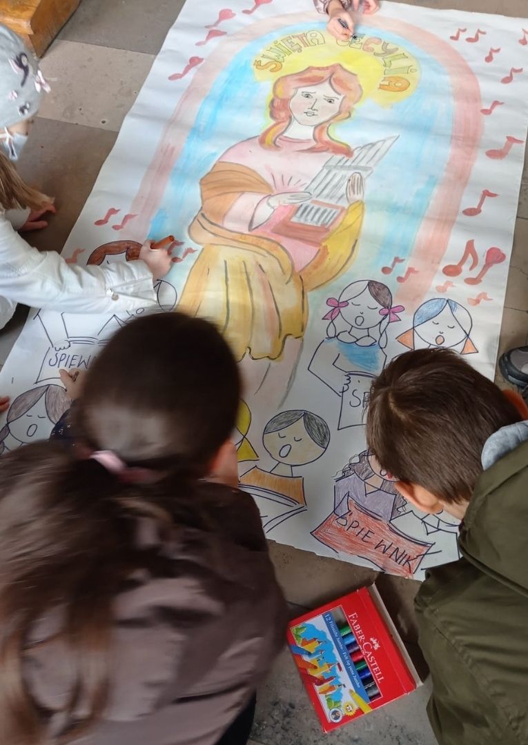 Z okazji uroczystości św. Cecylii dzieci z Podkowy Leśnej, spotkały się w kościele na adoracji Pana Jezusa, poznały historię życia świętej, wykonały wspólnie plakat i zjadły „małe co nieco”.