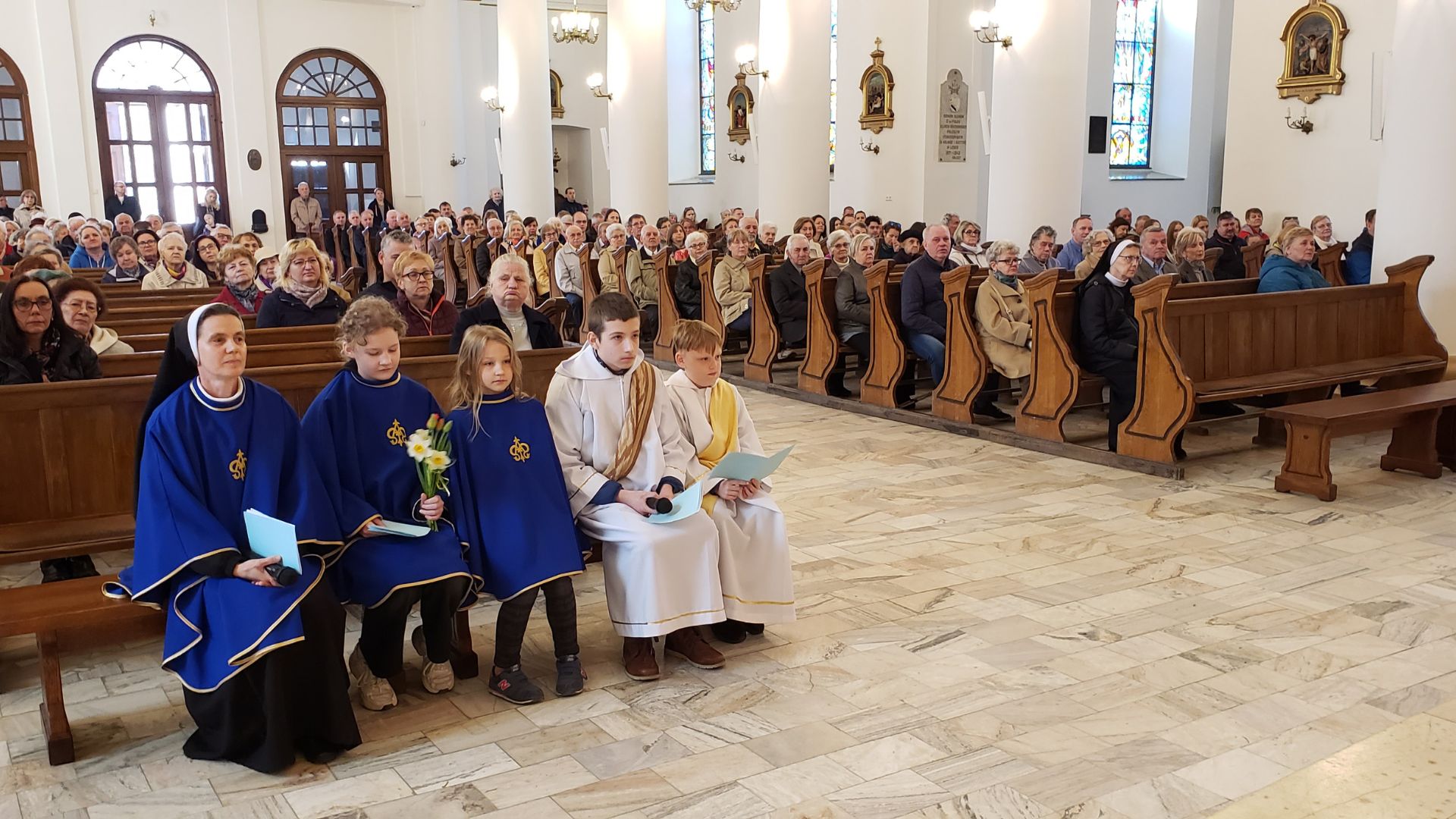 W trzecią niedzielę wielkanocną, 23 kwietnia b.r., w parafii pw. św. Aleksandra w Suwałkach, uczniowie ze Szkoły Podstawowej nr 2 im. Aleksandry Piłsudskiej pod kierunkiem s. Teresy Kalskiej zaprezentowali program poetycko – muzyczny pt.: ”Radość Zmartwychwstania Pańskiego”.