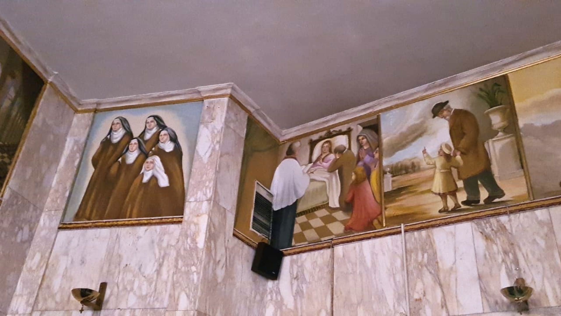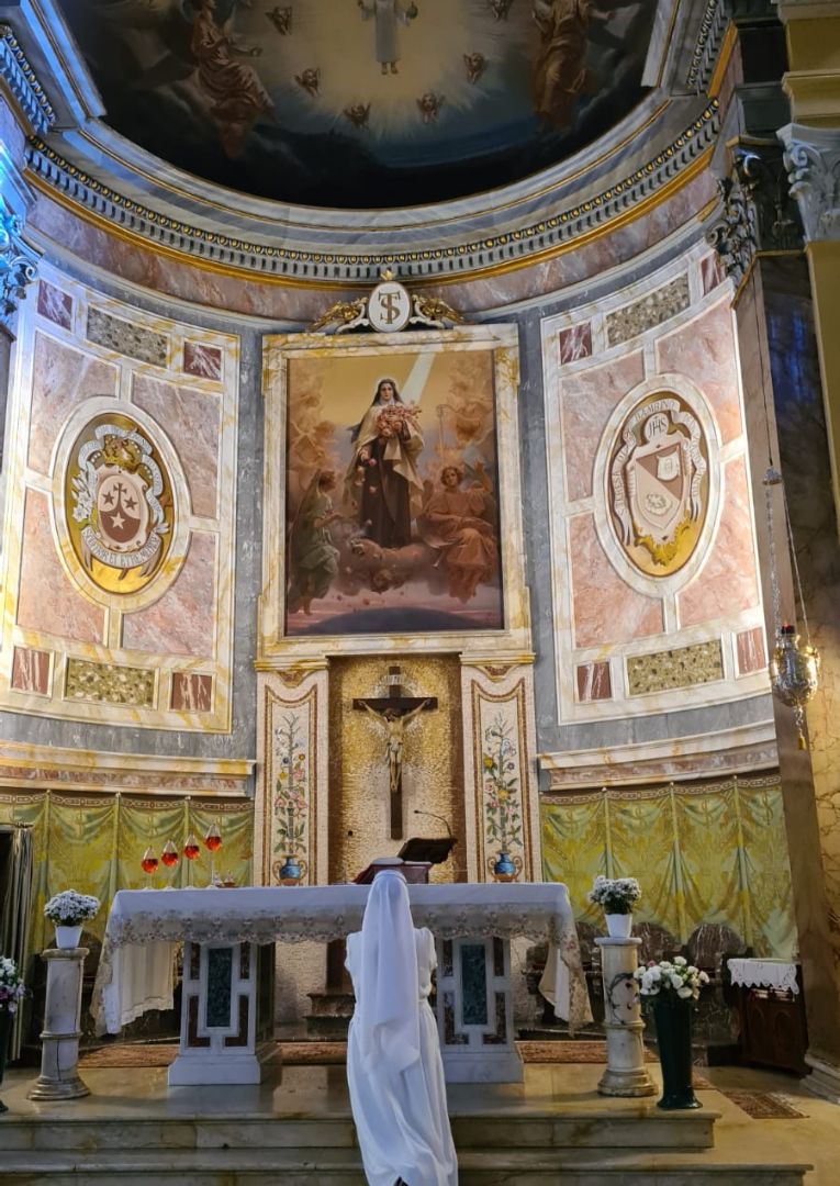 Warto też dodać, że kościół Karmelitów został wybudowany w latach 1929-1932, a uroczyście konsekrowany 1 października 1932 r. przez arcybiskupa Adeodato Giovanniego Piazza. W ołtarzu głównym jest umieszczony olejny obraz św. Teresy z Lisieux, dzieło Ettore Balleriniego z 1925 r., która rozsiewa róże i jest otoczona aniołami. Po dwóch stronach obrazu znajdują się dwa herby.