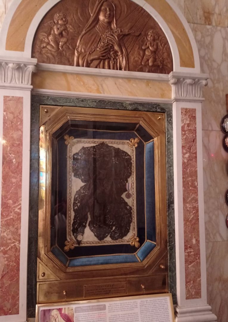 To właśnie w tym kościele w bocznej kaplicy jest umieszczona mantyla, czyli jej welon, który miała Teresa na głowie, w dniu 20 listopada 1887 roku.