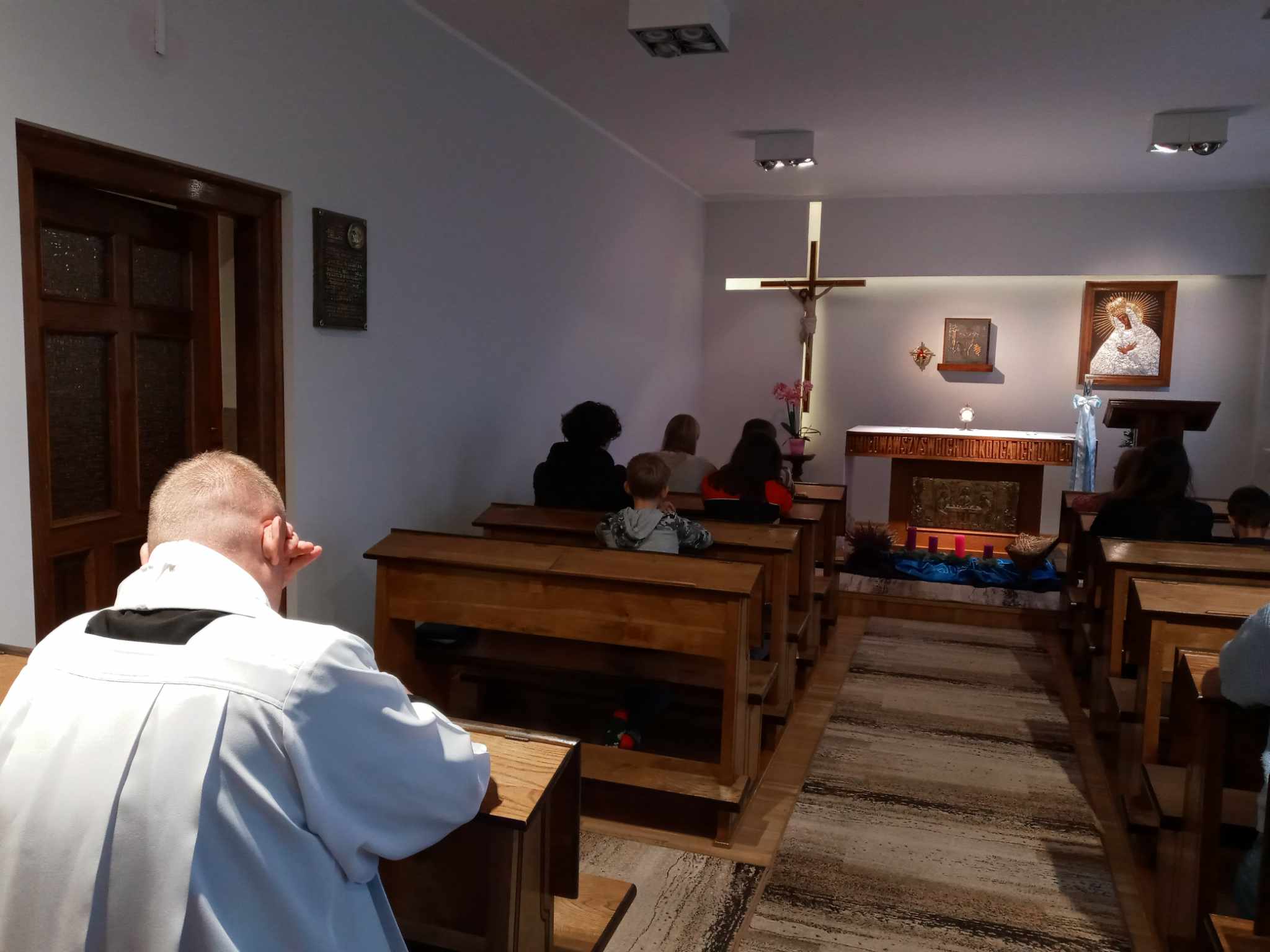 Na zakończenie dnia refleksji i skupienia młodzi ludzie pod opieką ks. Mariusza Zabłockiego przyszli do naszej kaplicy na adoracje Najświętszego Sakramentu.