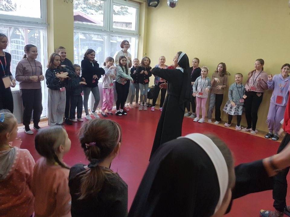 Po wspólnym zdjęciu rozpoczął się warsztat taneczny. Całą drużyną tańczyliśmy i śpiewaliśmy piosenkę zespołu Małe TGD „Góry do góry”, podkreślając, że dziecięca wiara może przenosić góry.
