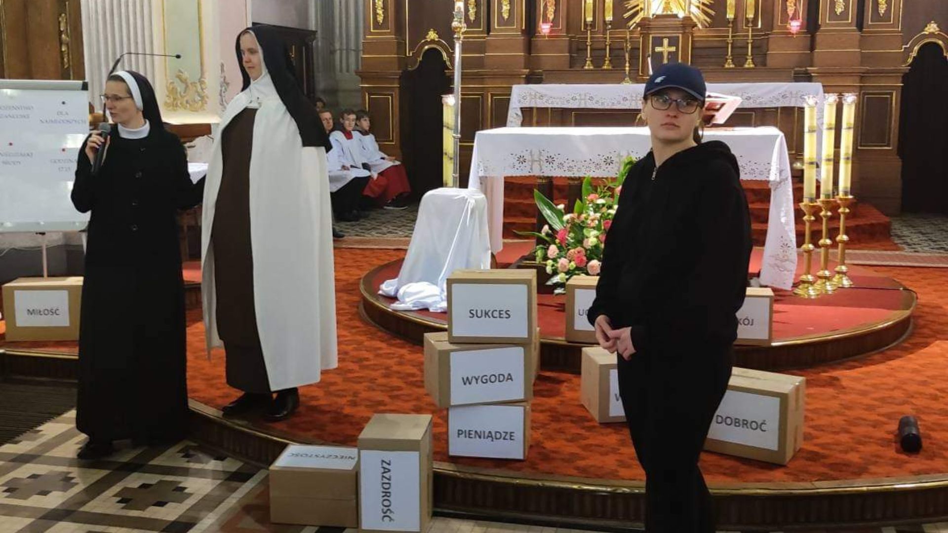 Kolejną niespodzianką, którą przygotowałyśmy była inscenizacja. Myślą przewodnia było porządkowanie swojego systemu wartości i to że święci chcą nam w tym pomagać. Przedstawienie ukazało nam misję naszej „małej świętej”, która powiedziała co to znaczy żyć miłością: „Żyć miłością, to znosić wady innych, to nie dziwić się ich słabościom, to budować się najdrobniejszym dobrym czynem, który się u nich dostrzeże”.
