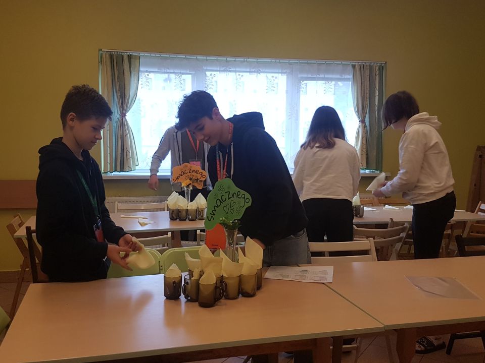 Ważnym punktem dnia było też II śniadanie. Oprócz tego, że wzmocniliśmy swoje ciała, to w czasie wspólnego posiłku mogliśmy się też cieszyć sobą nawzajem. Wolontariusze pod bacznym okiem siostry Anety pięknie ozdobili stołówkę oraz przygotowali smaczny napój do śniadania.