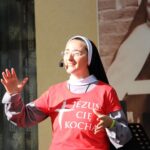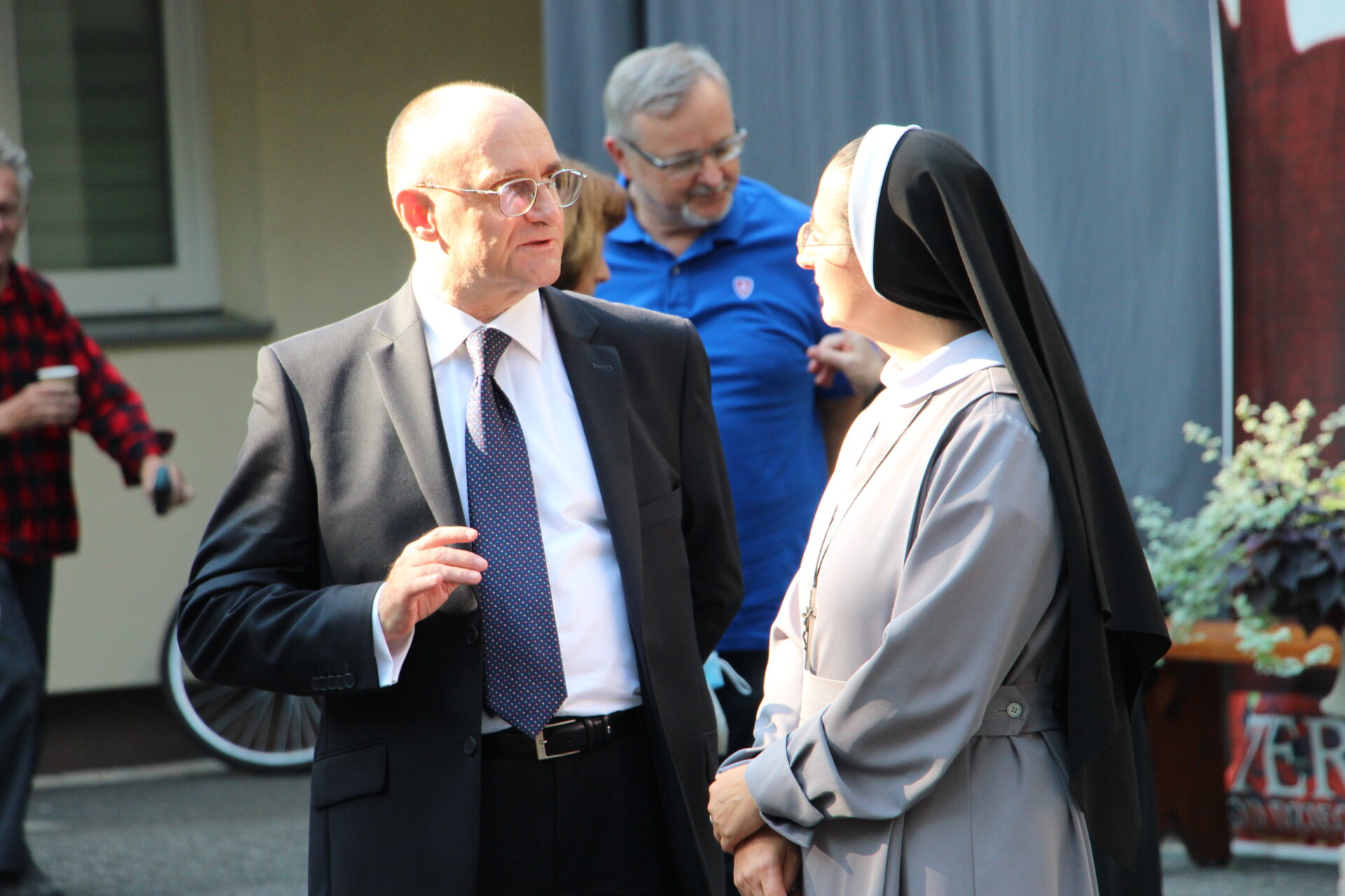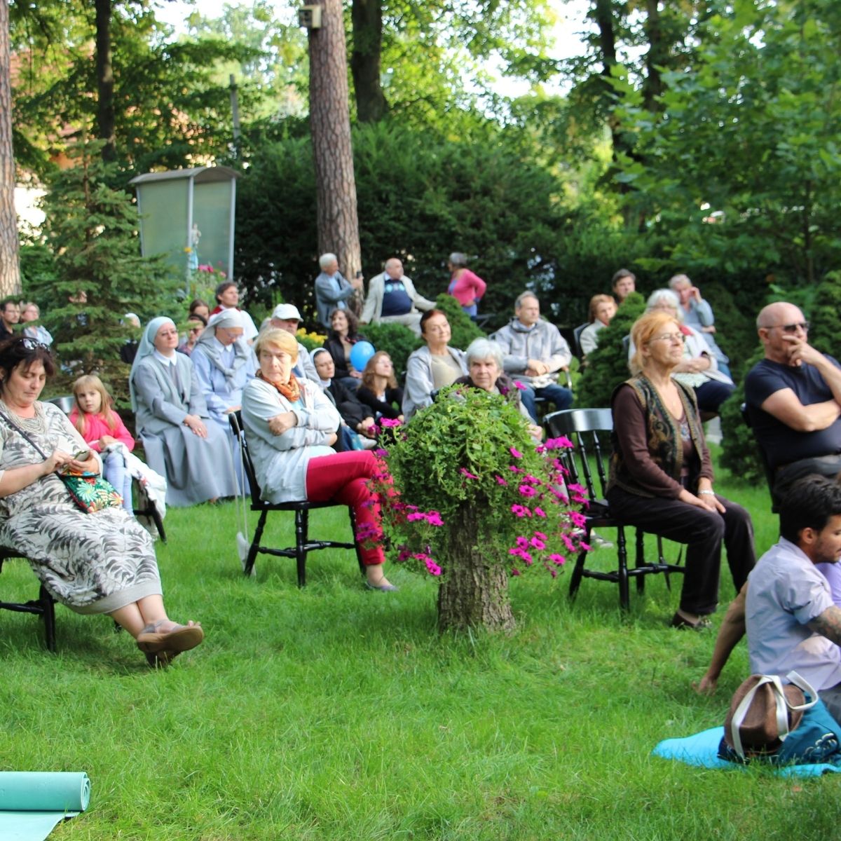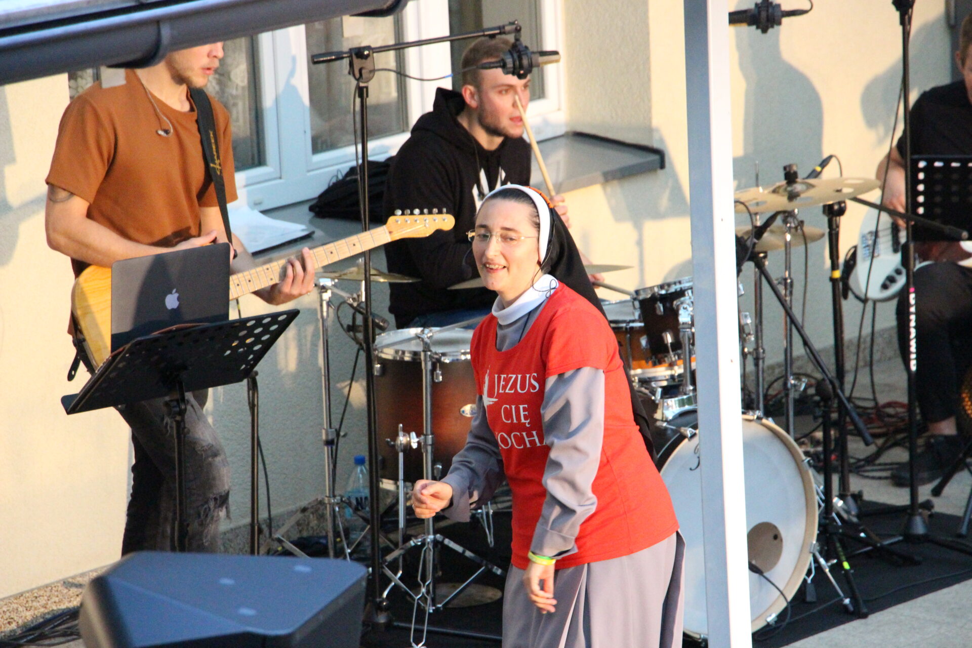 W niedzielę, 13 września, od wczesnych godzin przedpołudniowych rozpoczęły się w naszym ogrodzie próby Zespołu ŚDM, zaś koncert rozpoczął się o godzinie 16:00. To było wspaniałe muzyczne wydarzenie nie tylko dla młodej, ale również dla starszej publiczności, często porywanej żywą muzyką do tańca. Piękna muzyka Zespołu ŚDM wzbogacona była o refleksyjne fragmenty dzieł św. Teresy z Lisieux prezentowane przez siostrę Nikodemę Czerniecką – założycielkę, członka Zespołu oraz znakomitego konferansjera i moderatora niedzielnej zabawy. Zespół powstał przed czterema laty, aby wzbogacić duchową głębię przeżyć podczas Światowych Dni Młodzieży, które odbyły się w Krakowie w roku 2016. Zespół nadal tworzy wspaniałą muzykę i koncertuje uświetniając największe wydarzenia wspólnoty Kościoła Katolickiego. Zaprezentował się nam w następującym składzie: s. Nikodema Czerniecka CST (wokal, konferansjerka), Łucja Warych (wokal), Natalia Szulc (wokal), Martyna Chylińska (wokal), Marek Kunda (perkusja), Kajetan Klimaszewski (gitara basowa), Marcin Rogalski (keyboard), Bartosz Snarski (gitara), Dawid Borowski (skrzypce). Dobra chrześcijańska muzyka, wspaniała aranżacja oraz klimat pełen radości z ewangelizacyjnym przesłaniem, zgromadził w niedzielę około 100 uczestników.