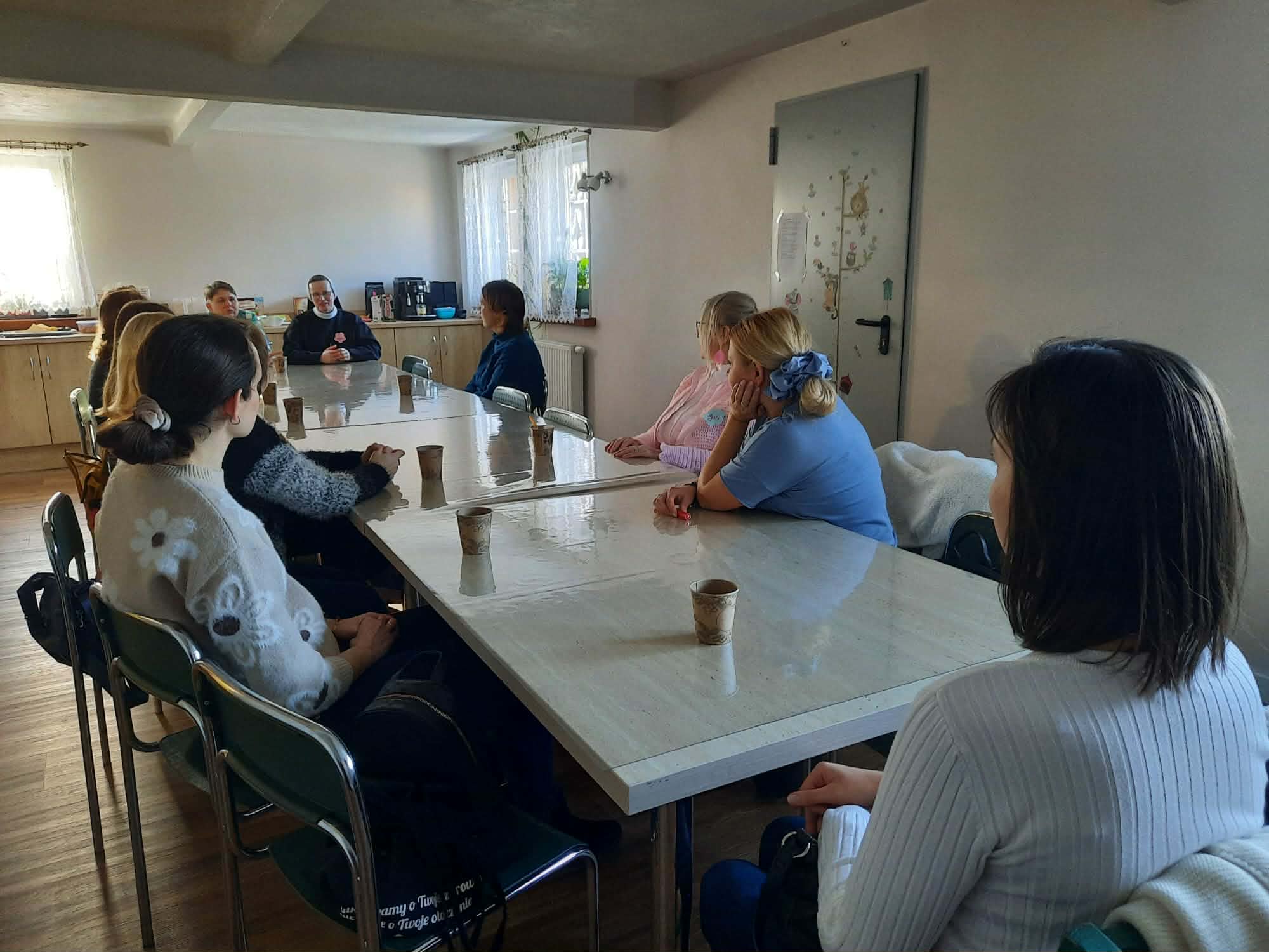 Po wspólnym obiedzie modliłyśmy się koronką dziecięctwa duchowego do św. Teresy w kaplicy, a potem nastąpił czas dzielenia się i wzajemnego słuchania, czyli rozmów w kobiecym kręgu przy kawie i herbacie.